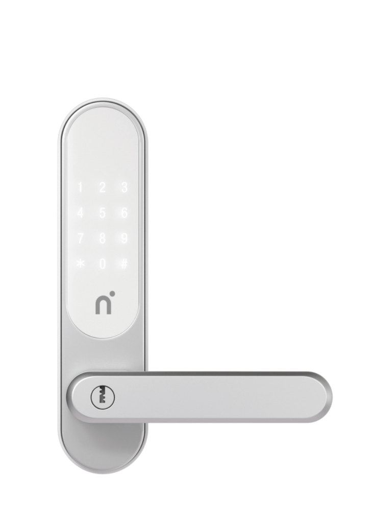 Nimly Touch Silver/White vašeho domova. S možností odemykání kódem, RFID klíčenkou nebo aplikací (s volitelnými moduly) ovládání.